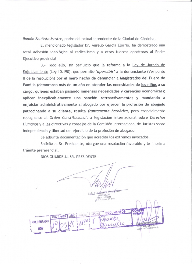 Por eso presentamos la nota que reproducimos ante la presidencia del Jurado de Enjuiciamiento de Magistrados y Funcionarios Judiciales, Pidiendo FOTOCOPIAS ara denunciar este aberrante hecho ante la Comisión Interamericana de Derechos Humanos y ante la Comisión Internacional de Juristas. Como se lo Avisé personalmente.