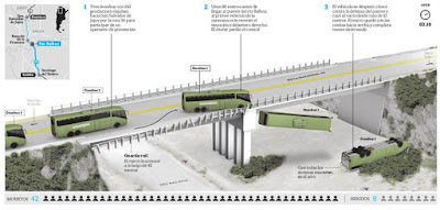 Y se estrellara contra el guard-rail del puente antes de caer por el precipicio hasta el río Balboa.